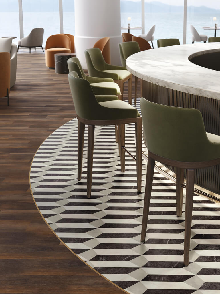 For an unmistakable hint of grandeur, Fontana Marble White achieves a timeless marble aesthetic, stunning when accented with stripping or contrasted with darker stones.