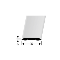 Transition profile made of Aluminium with a width of 25 mm. Self-adhesive. Installation: The subsurface must be free of dust and grease, level, firm, dry and load-bearing. Other colors and powder coating in RAL colors possible on request. Custom-made cuts possible on request.