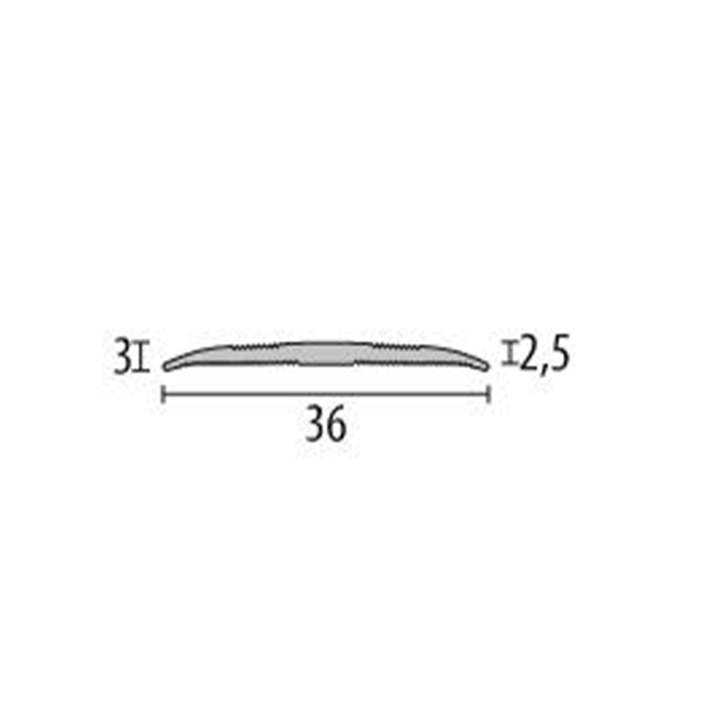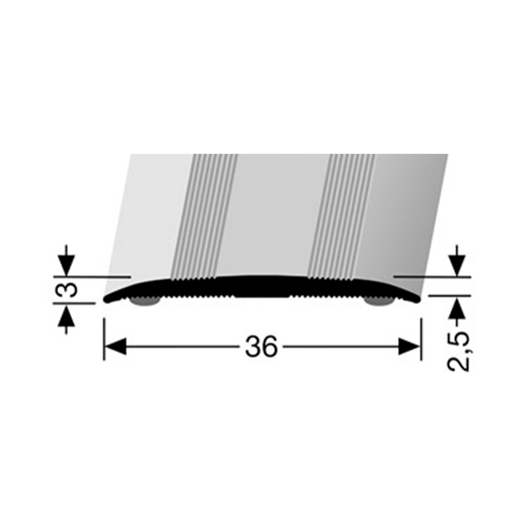 Transition profile made of Aluminium with a width of 36 mm. Self adhesive. With decorative grooves. Installation: The substrate must be free of dust and grease, flat, hard, dry and stable. Other colors and powder coating in RAL colors available on request. Customization possible on request.
