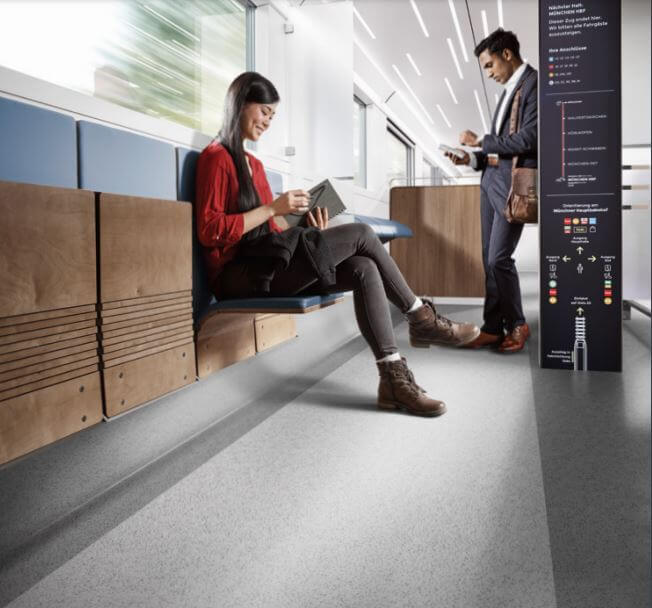 Noraplan Marine is a single-layer rubber floor covering available in rolls. The flooring’s material properties feature an increased resistance to abrasive wear. The higher flexibility of Noraplan Marine also leads to an easier installation. The noraplan plus mobil is available based on a minimum quantity of 600 m²