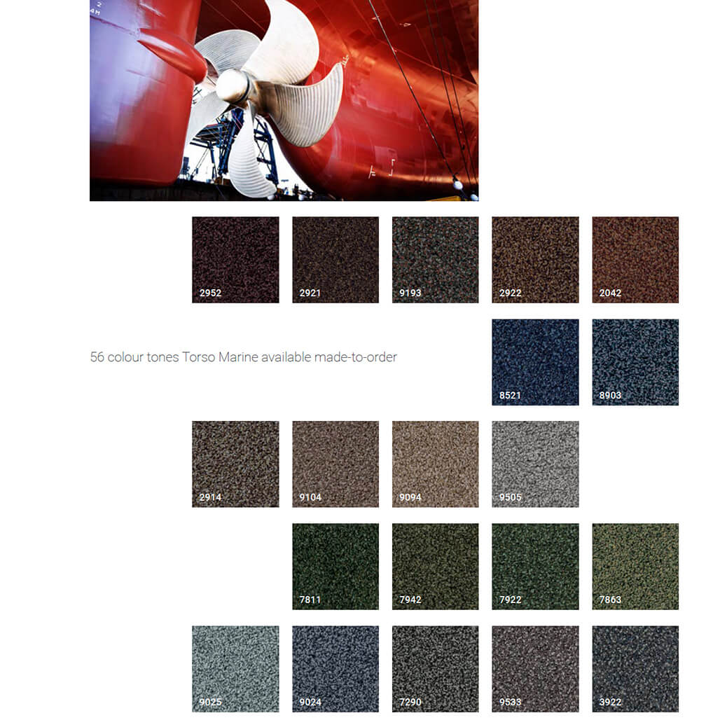 DESSO Torso Marine, a comfortable and durable carpet tile collection, certified for use in cabins, crew areas, conference rooms, offices and wheelhouses on board any kind of passenger vessel, cargo carrier or offshore structure. A range of 56 exciting colour tones can be made-to-order. Carpet tiles are easy to install in one direction, require low maintenance costs, and can be replaced individually.