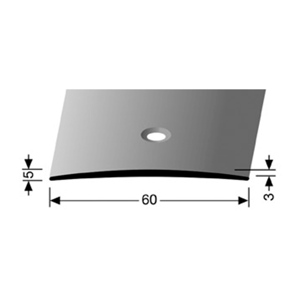 Transition profile made of Aluminium with a width of 60 mm. Drilled recessed in the middle. Mounting: screws with Torx screws 3.5 mm. Other colors and powder coating in RAL colors available on request. Customization possible on request.