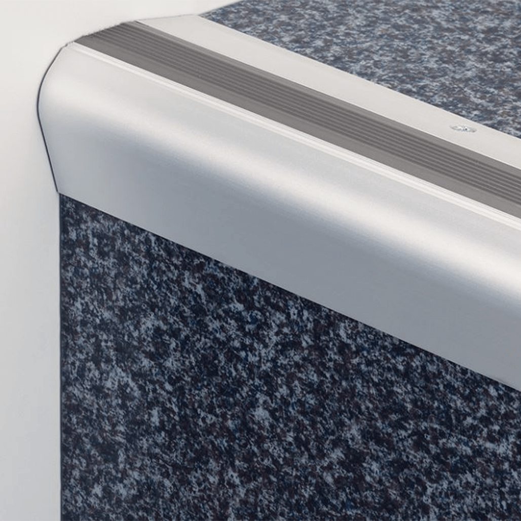 PVC-inserts for safety stair nosings, grooved, width 29 mm, antislip slide factor R9, with air cushion and expansion joints. For stair nosing profiles 700, 701, 702, 703, 704, 705, 706 A+C , 707 A+C, 708 N and 709. Available per roll.