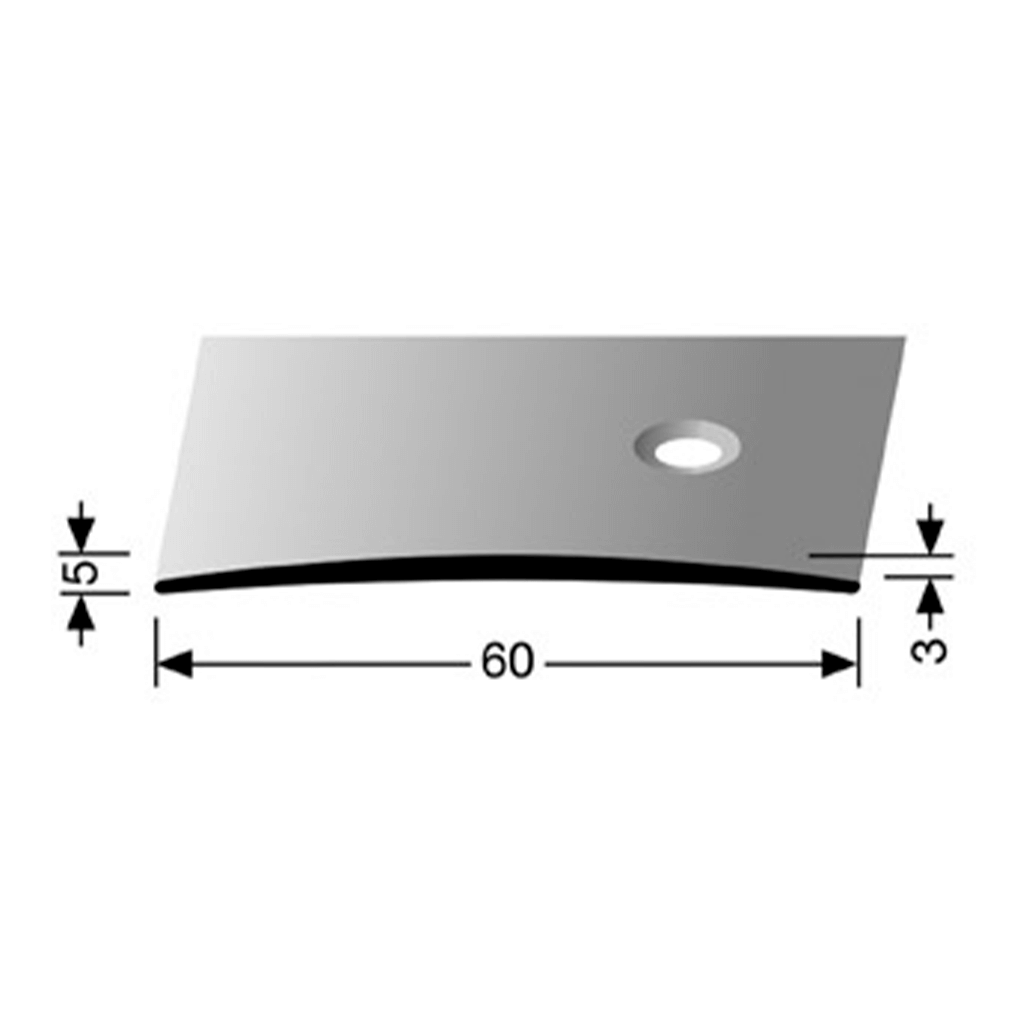 Transition profile made of Aluminium with a width of 60 mm. Countersunk drilled on the side. Mounting: screws with Torx screws 3.5 mm. Screws 3.5. Other colors and powder coating in RAL colors available on request. Customization possible on request.