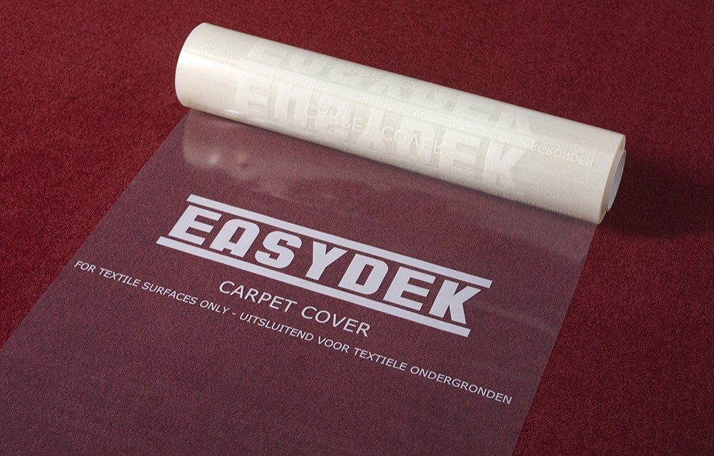 Use Carpet Cover during construction, renovation and maintenance work. Covering carpet with Carpet Cover is very simple. The protective film is rolled up in such a way that the adhesive layer is on the outside. Roll out Carpet Cover by hand or foot. In case of very large areas use the Applicator for even faster installations. After completion of the work, Carpet Cover can be easily removed. What remains is a clean carpet. This product is not IMO-certified.
